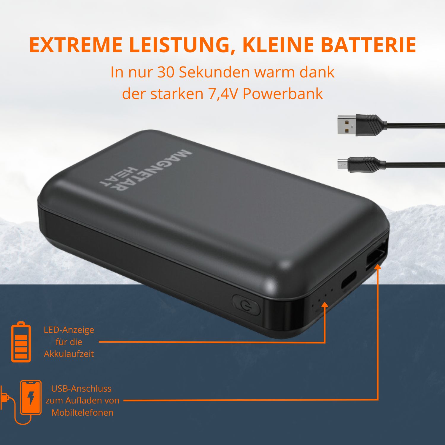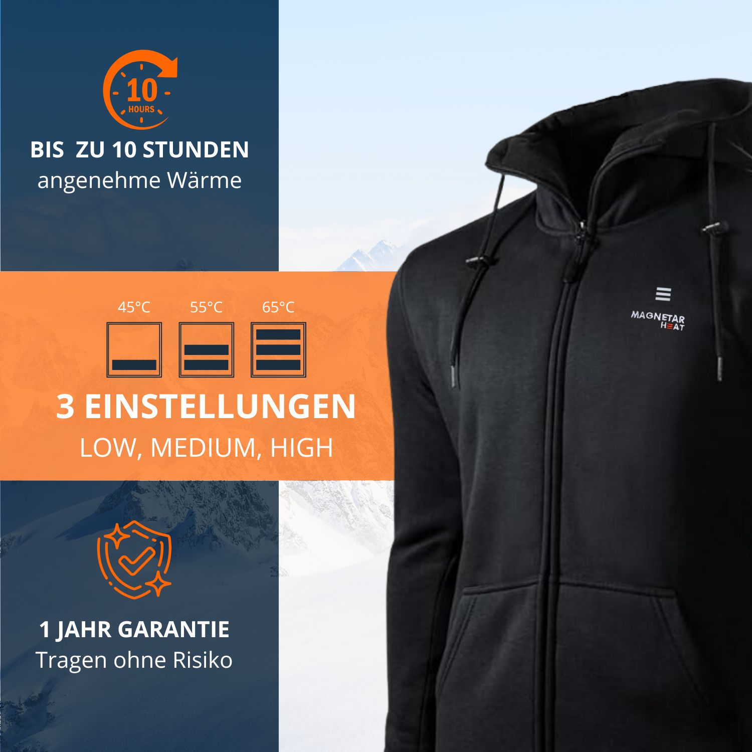 Mit drei Heizstufen wählst du deine ideale Temperatur – perfekt für Outdoor-Abenteuer oder kalte Tage in der Stadt.