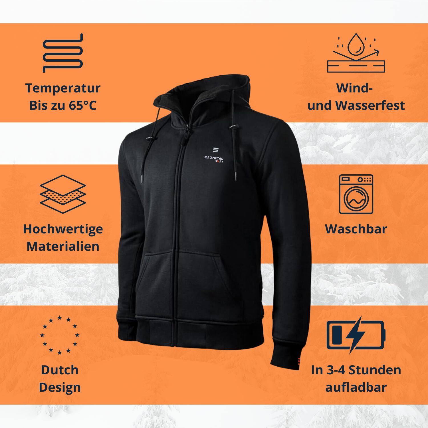 Erlebe maximalen Komfort mit der Vulcan Heizjacke von Magnetar Heat®. Diese wasserdichte Softshell-Jacke schützt dich zuverlässig vor Wind und Wetter – und hält dich immer angenehm warm.