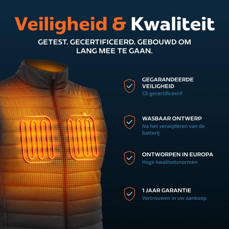Heerlijk vest, mooie stof die keurig is afgewerkt, verwarming werkt prima! Vlotte levering