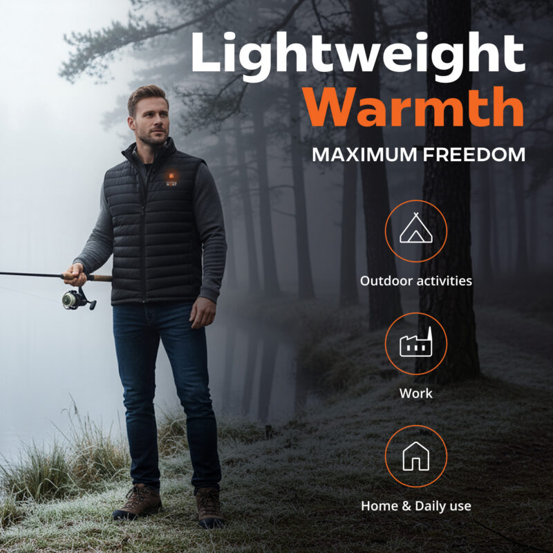 De bodywarmer is geschikt voor mensen die behoefte hebben aan verwarming wanneer het koud is. Ook is het uitermate geschikt voor mensen met rug klachten of een slechte bloedomloop. Door het speciale verwarmingselement op de borst én de rug, geeft het evenredige opwarming aan jouw lichaam. Zelfs op de laagste stand is deze bodywarmer heerlijk warm. Op de middelste en hoogste stand heb jij het zelfs in de koude winter warm. Ook ons verwarmd vest en verwarmde jas bieden jou deze warmte. Het verwarmd vest is meer geschikt voor onder je jas en over een shirt. De jas is meer geschikt voor buiten: deze is winddicht en waterafstotend. De bodywarmer is geschikt voor onder je jas en over je shirt, trui of vest. Ideaal voor binnen en buiten door de warmte elementen die in te stellen zijn in drie warmte treden. Zo is de verwarming altijd aan te passen aan jouw omstandigheden, of jij nu in de buitenlucht of binnen bent.